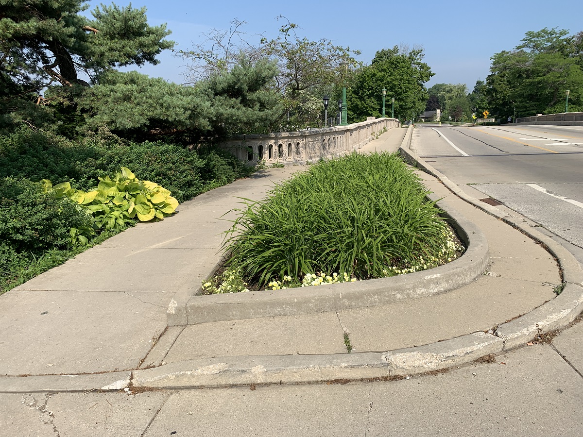 "Grass" and orange flowers at Sheridan and Michigan Ave.