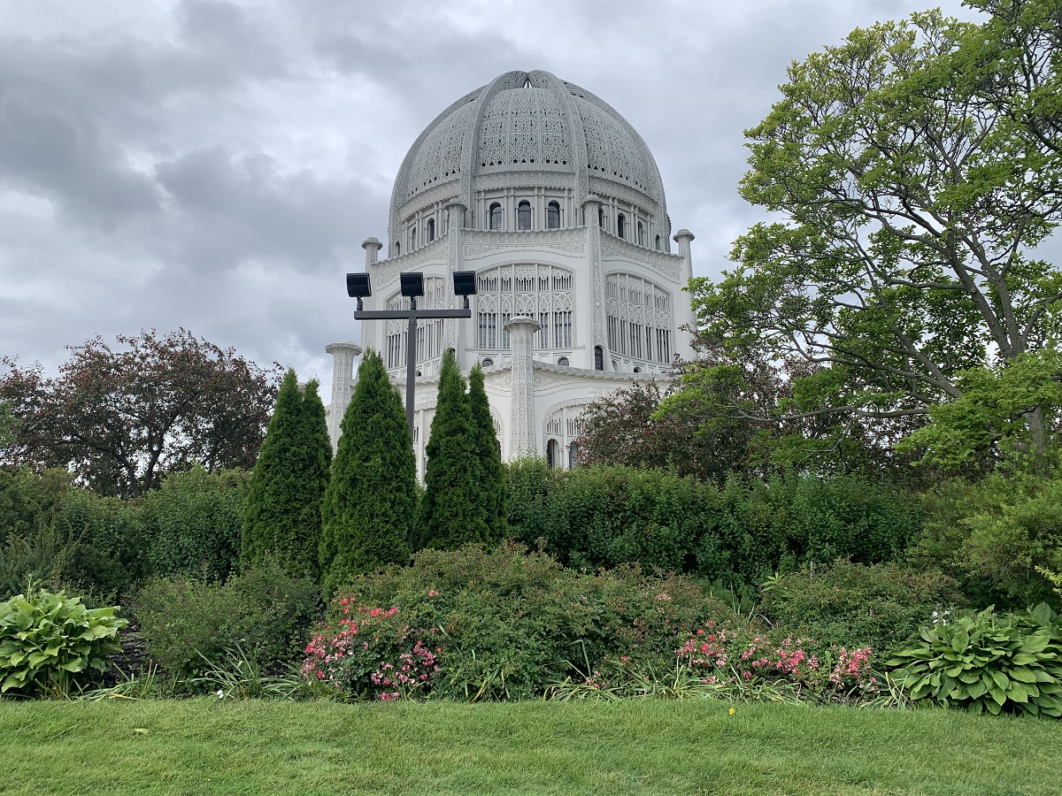 Red and pink roses by Baha'i Temple