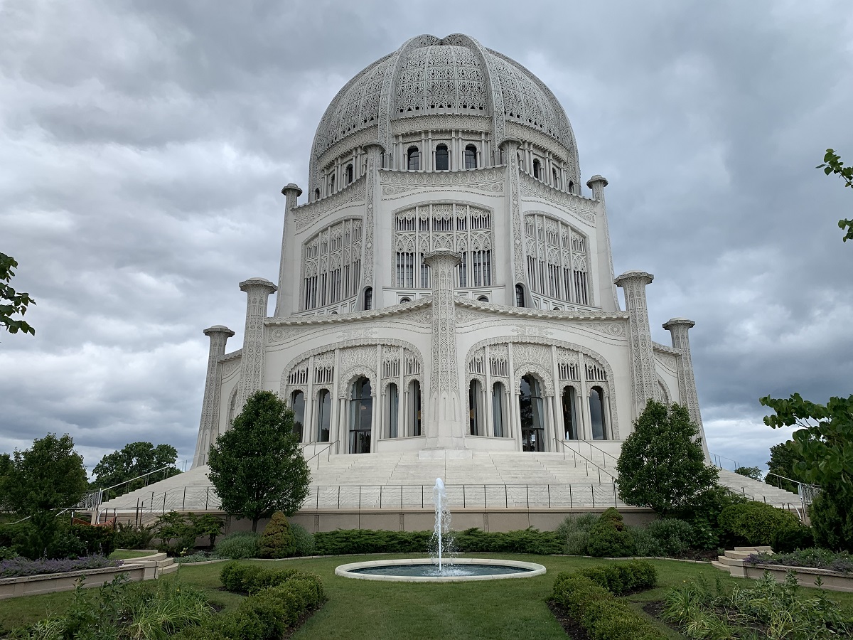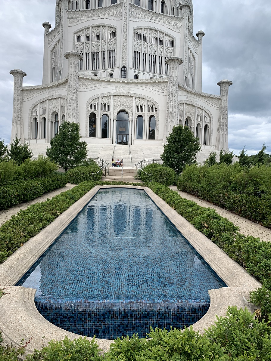 Lagoon with fountain by Baha'i Temple
