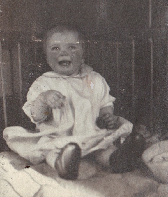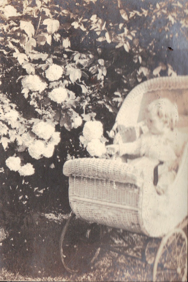 Ethel in stroller with big blossums