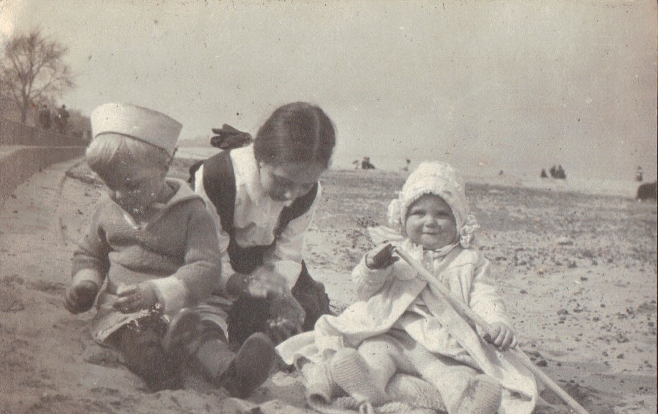 WDF, lady, Ethel on beach of Lake Michigan