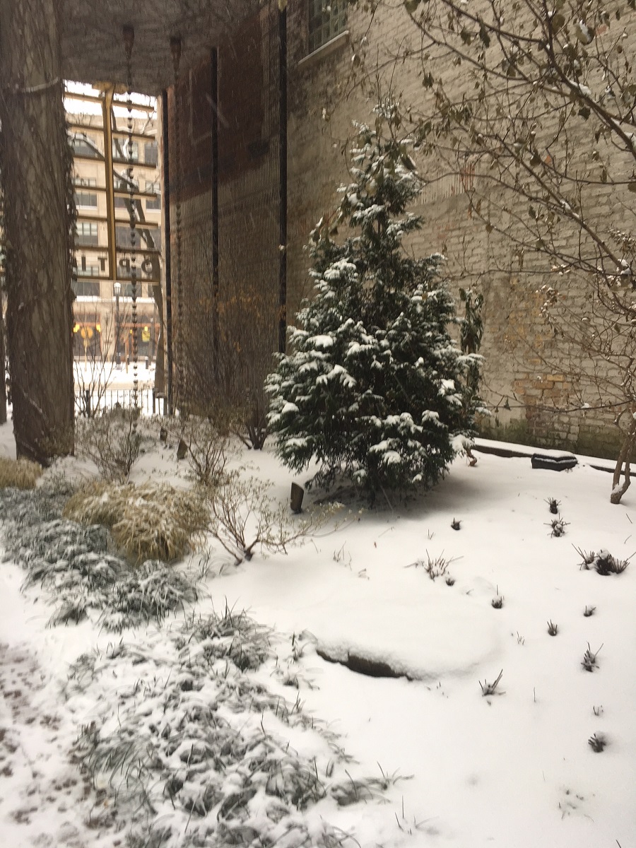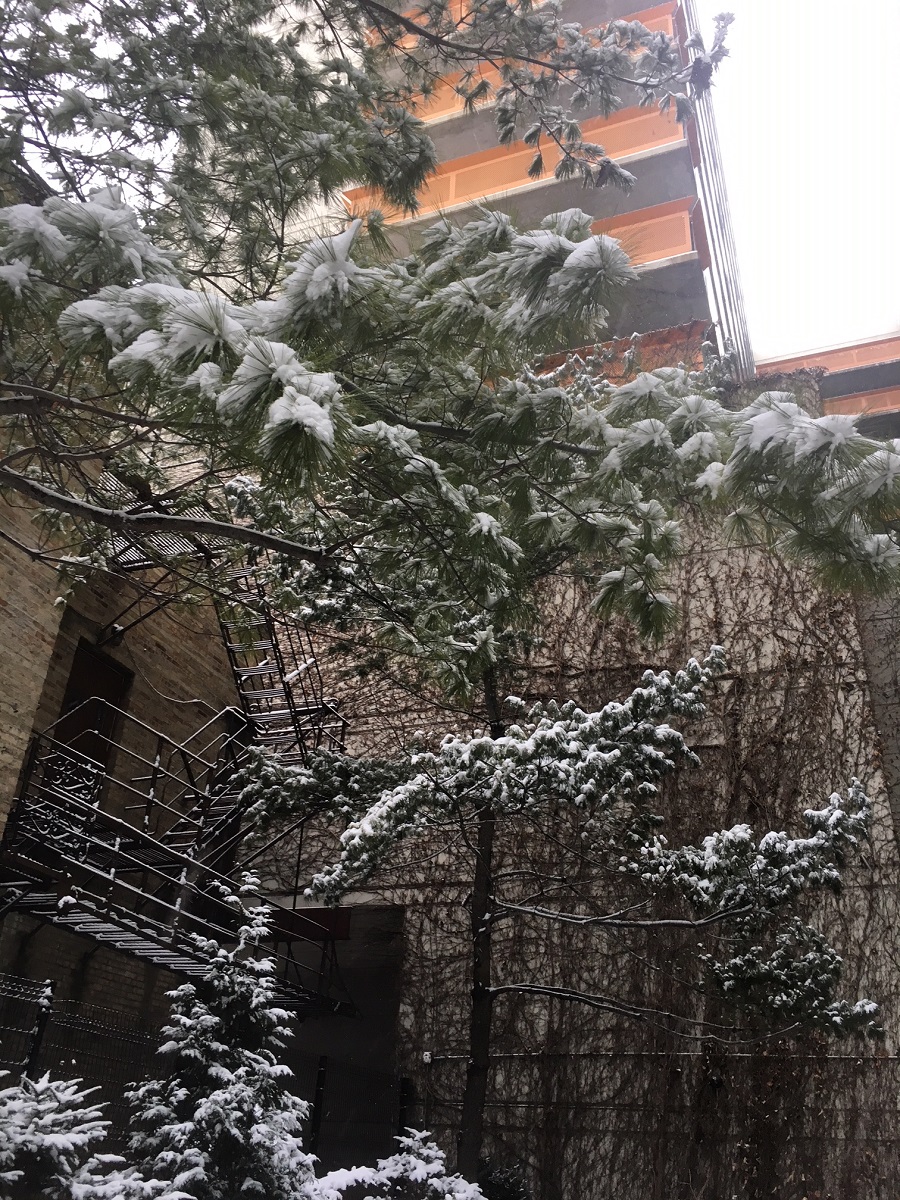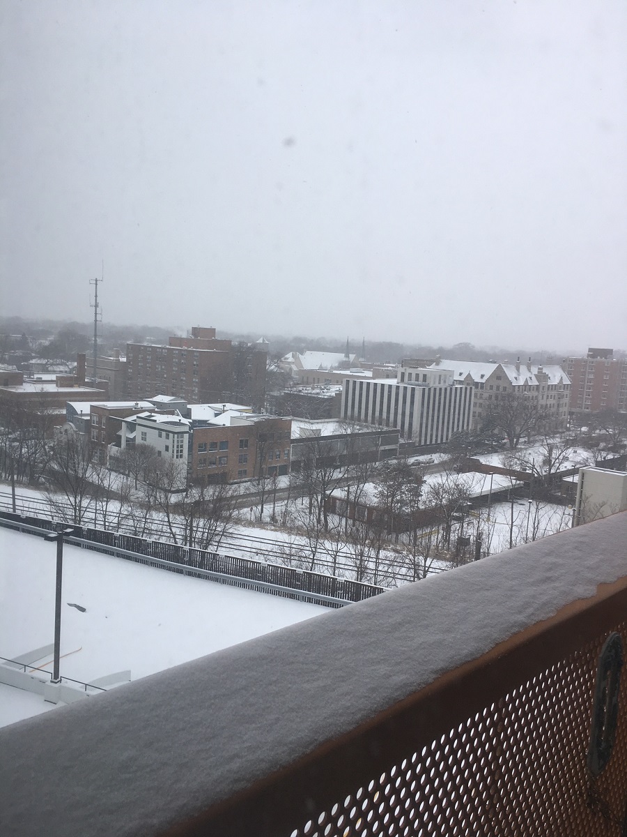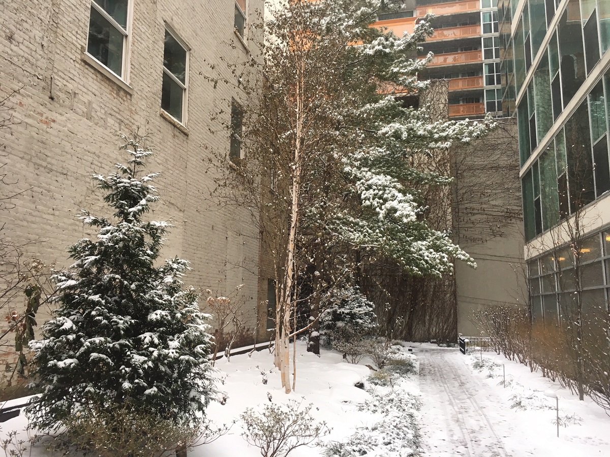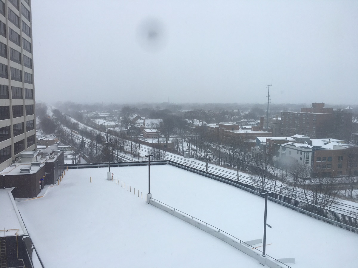 Looking southwest on Lake with St. Francis church on left and fancy tower condo on right