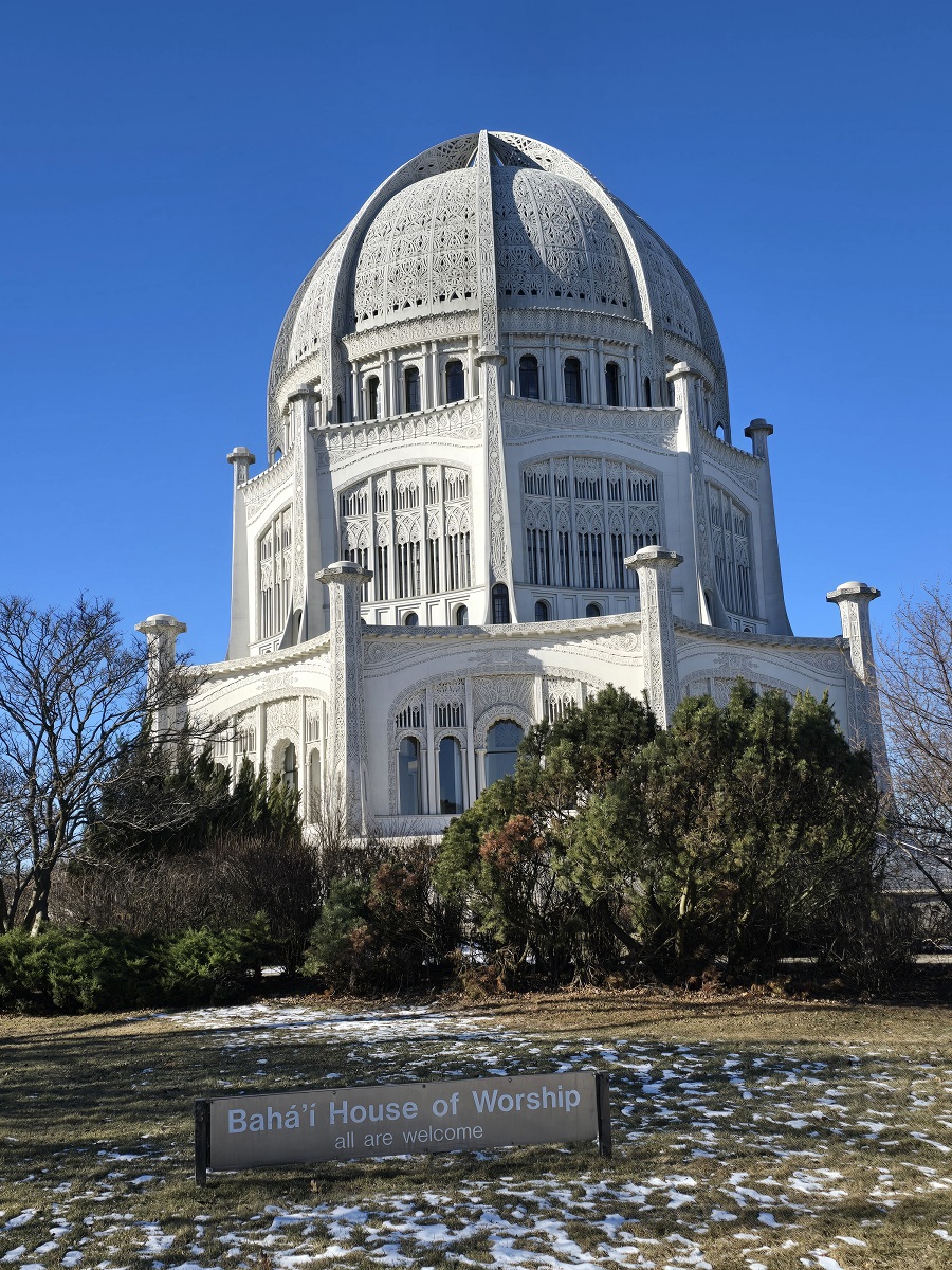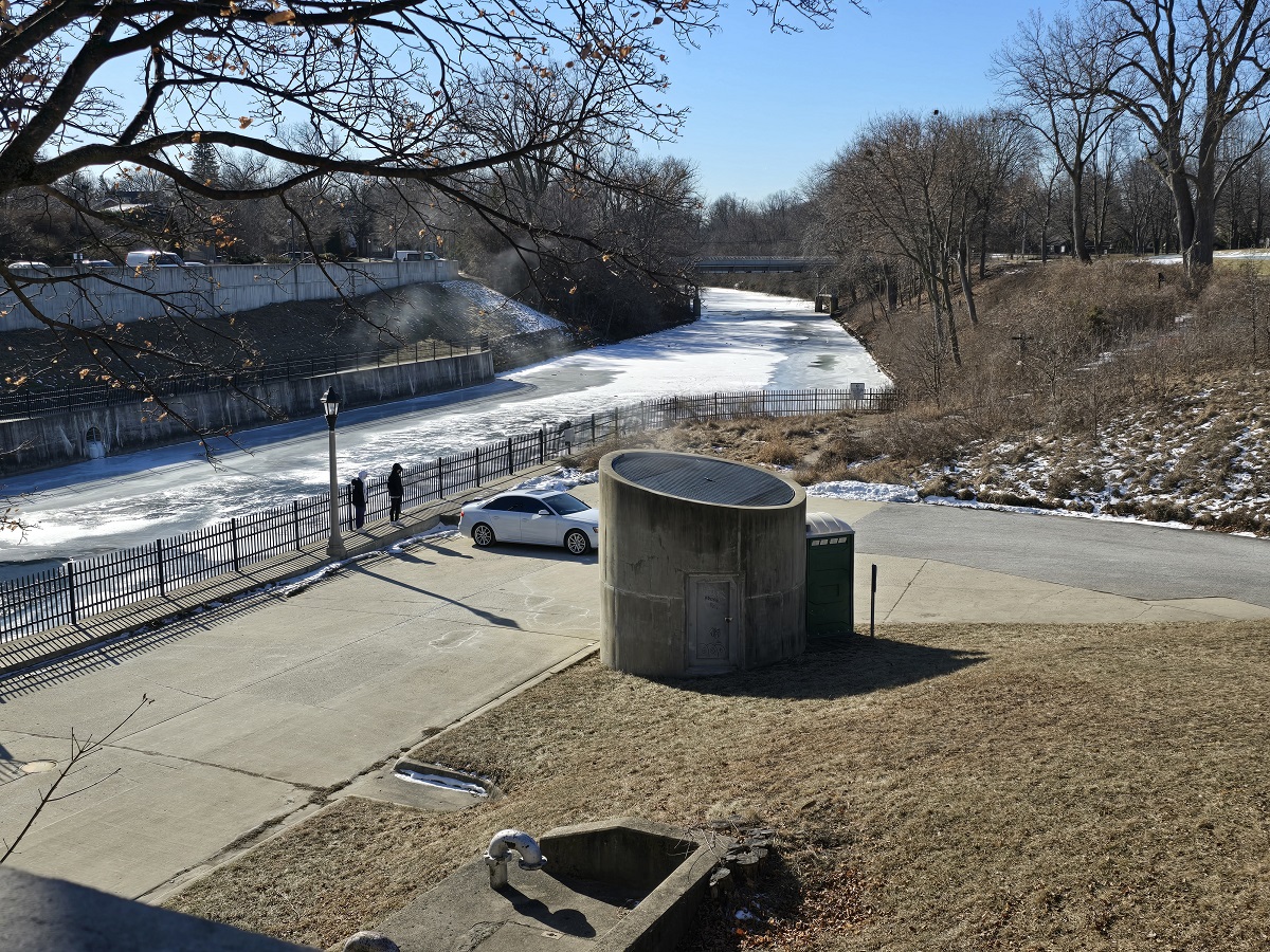 North Shore Canal frozen over from Sheridan Road at Baha'i Temple
