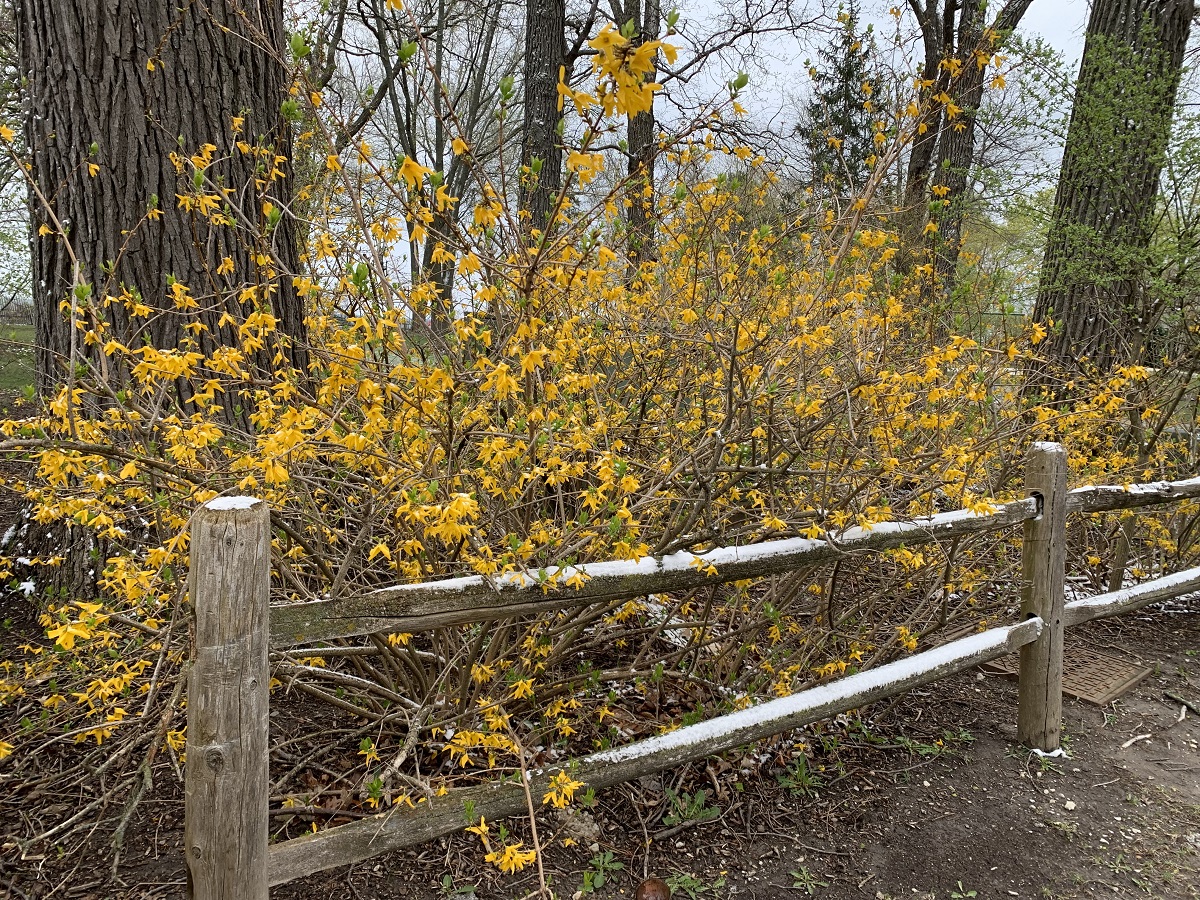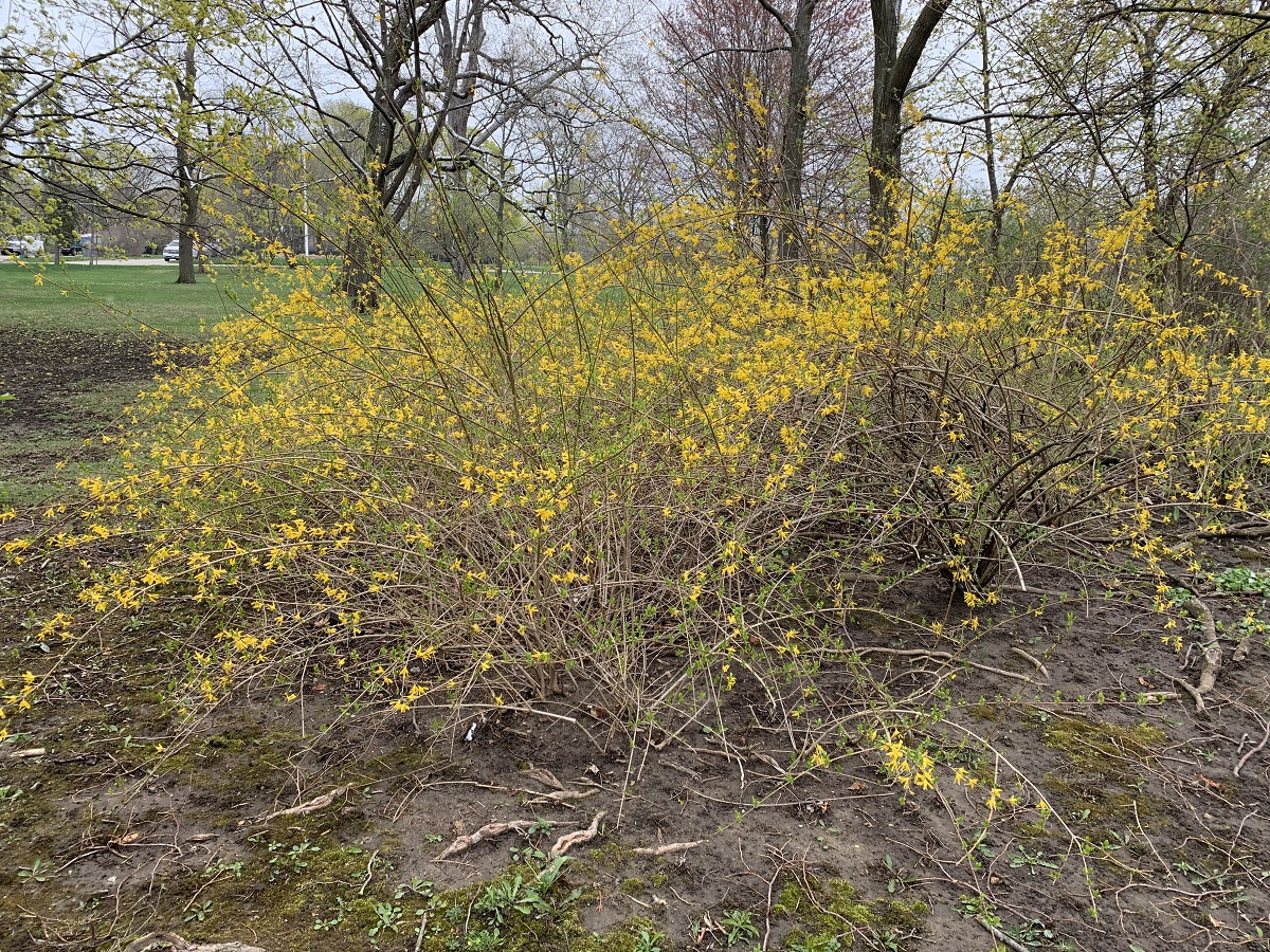 Forsythia in Langdon Park on Sheridan Road just south of Plaza do Lago