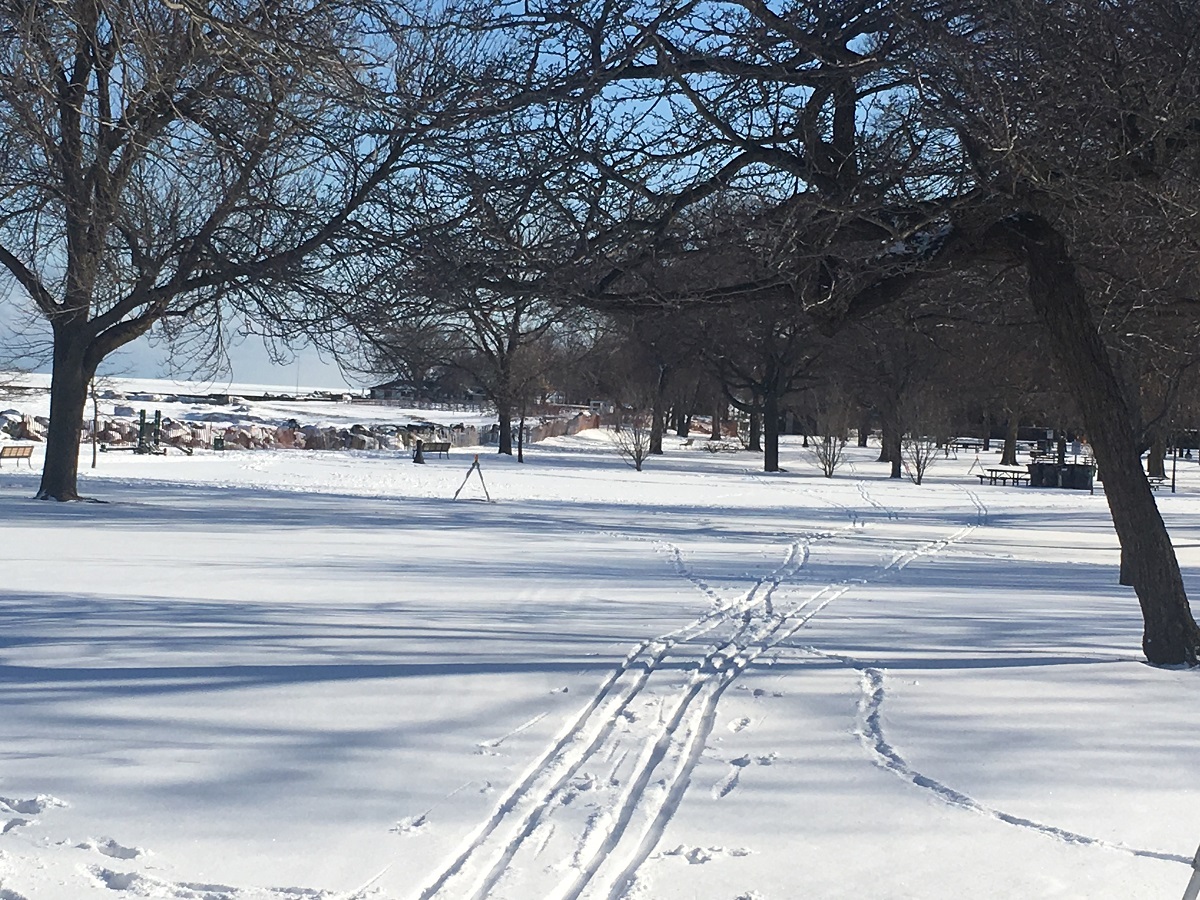 Andy XC skiing looking south in Dawes Park, Evanston, at many XC ski trails