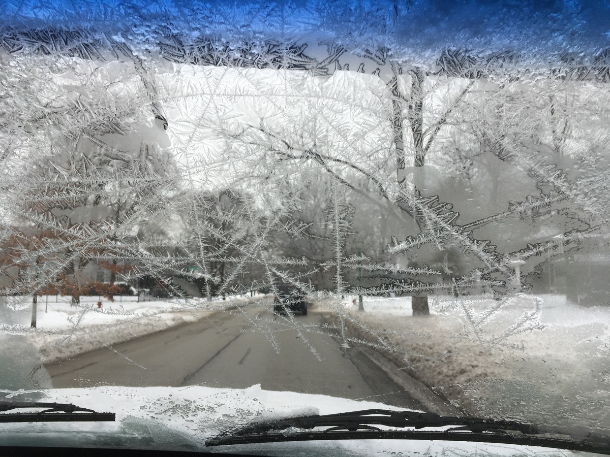 Attractive ice crystals on Ron's windshield -- 1/24/19