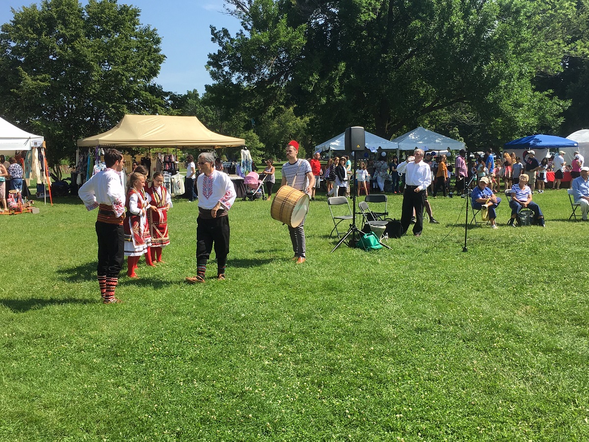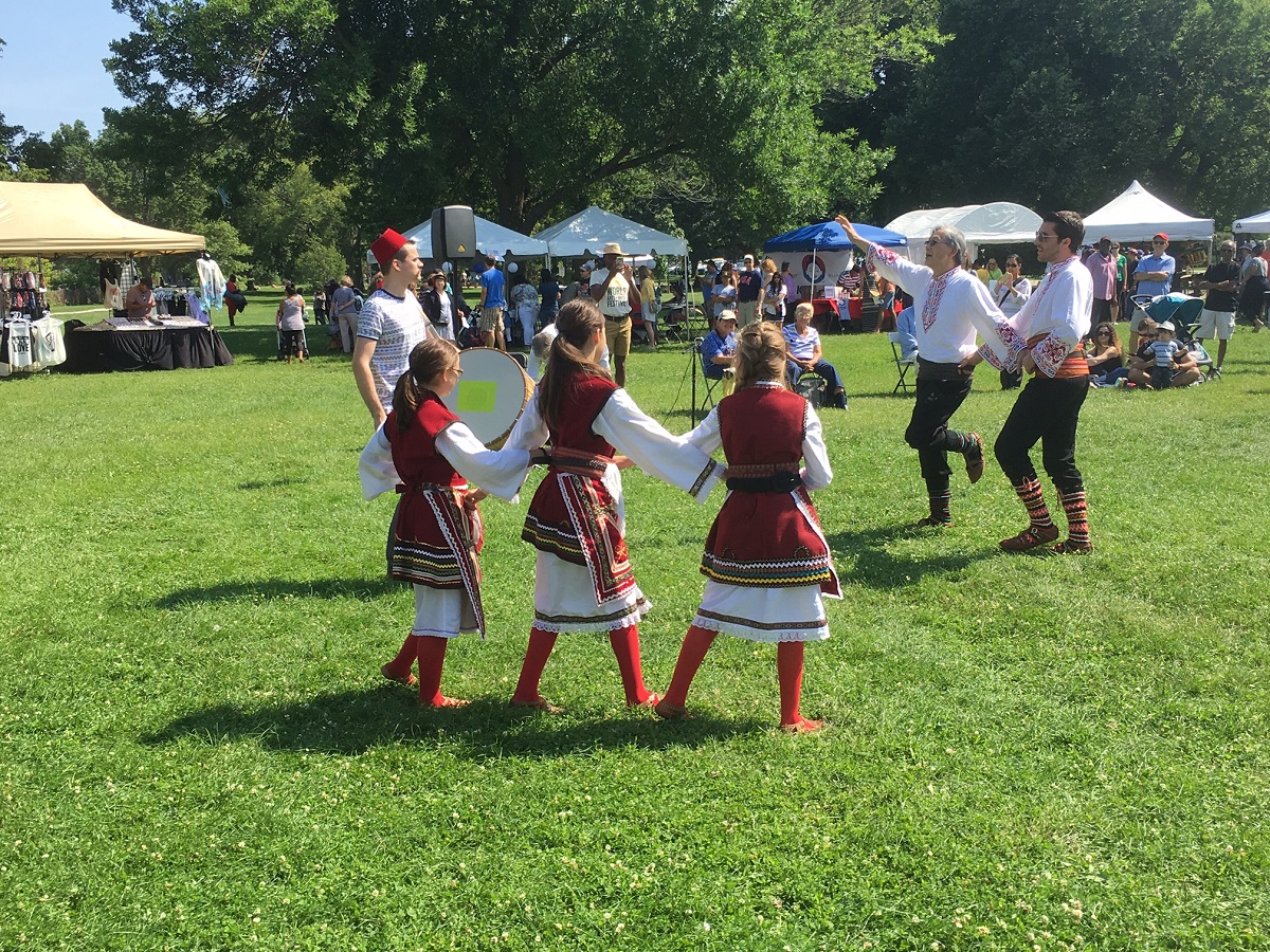 2 guys and 3 ladies dressed up to dance in the south end of the World Arts Festival