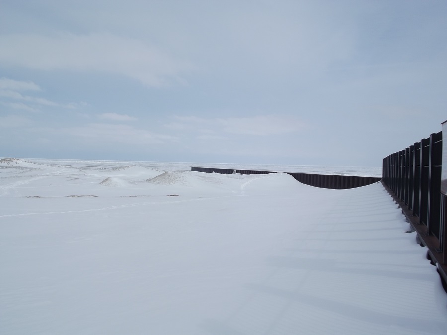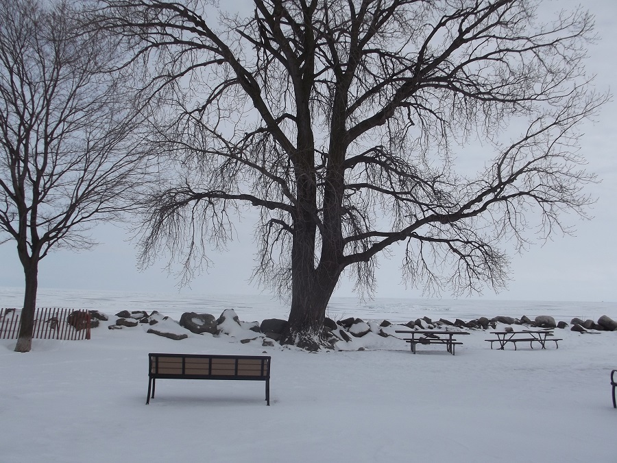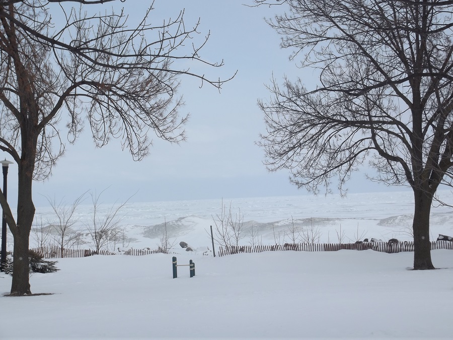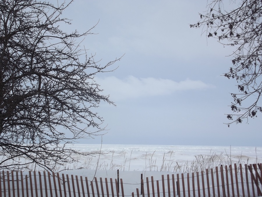Lake Michigan from Dawes Park with snow and ice to the horizon -- the east wind blew it over to the west shore