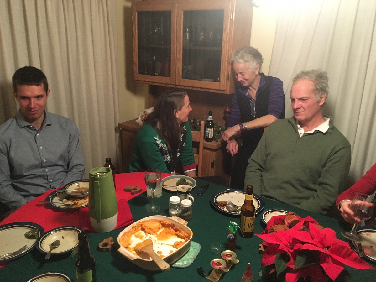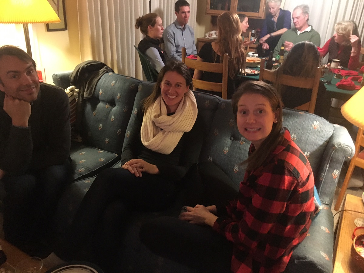 Jonathan (Allegra’s husband), Allegra, and Maggie on couch. and (around the table in back - Clockwise) Josie, Nate, Dorothy, Nan, Jamie, Tristan, from back: Tara and Siv