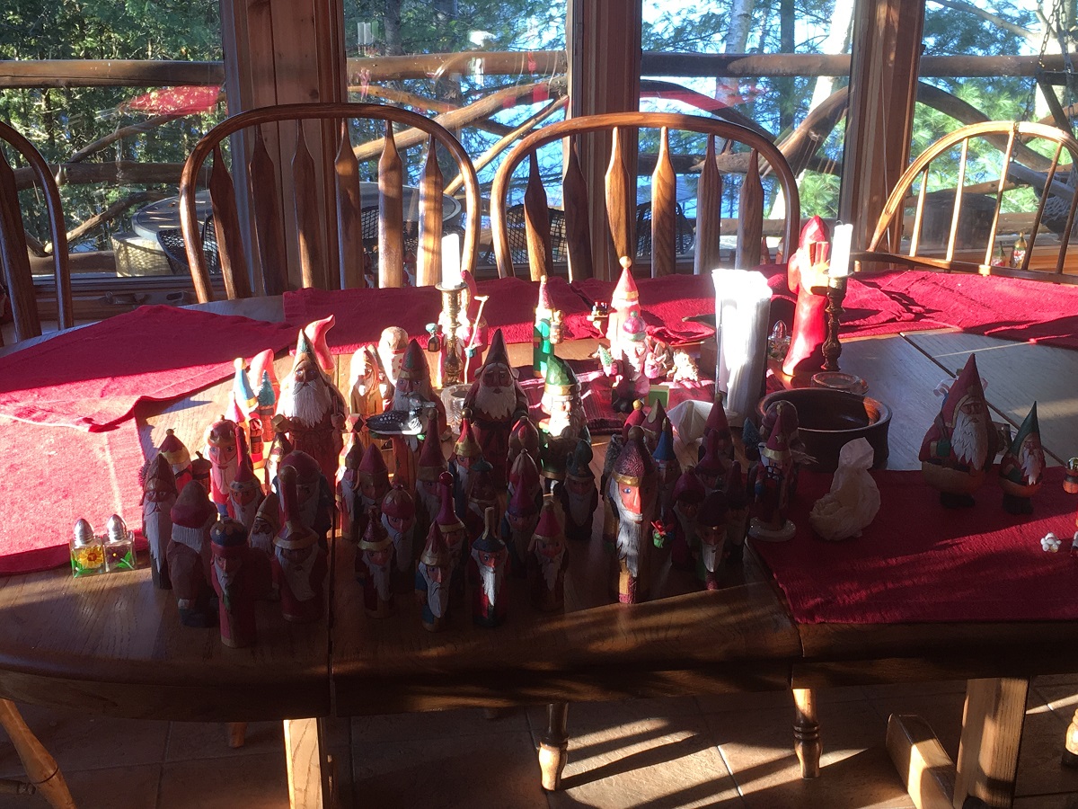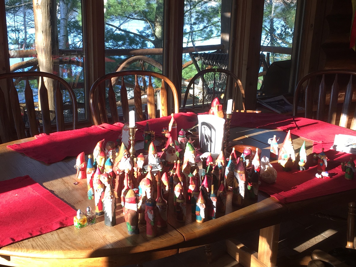 Many of Jim Sr.'s santas in sun -- 12/23/18