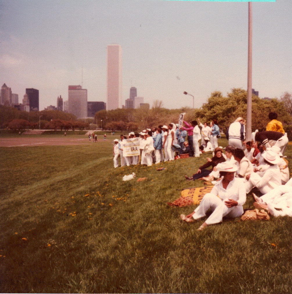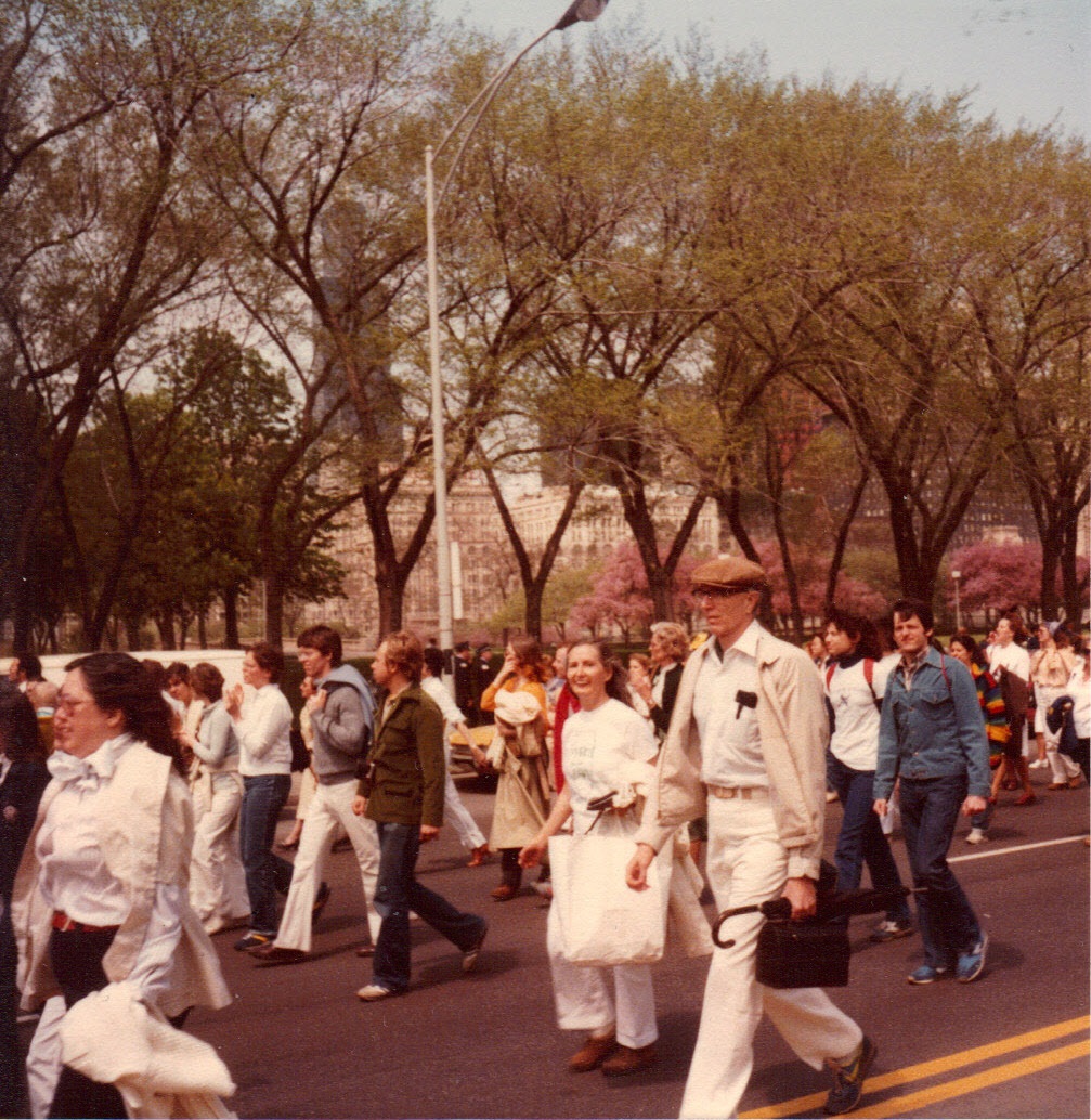Mom, Dad with many others on Lake Shore Drive -- Chicago ERA march