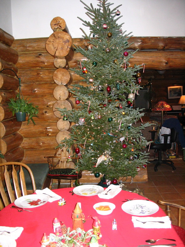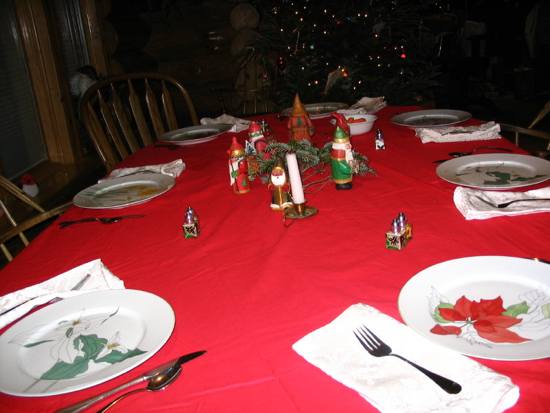 Table set for Christmas Dinner and tree