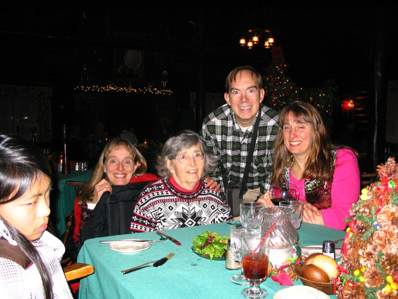 Dorothy, Carol, Andy, Marjorie, Tom, Tara and Duncan eating out